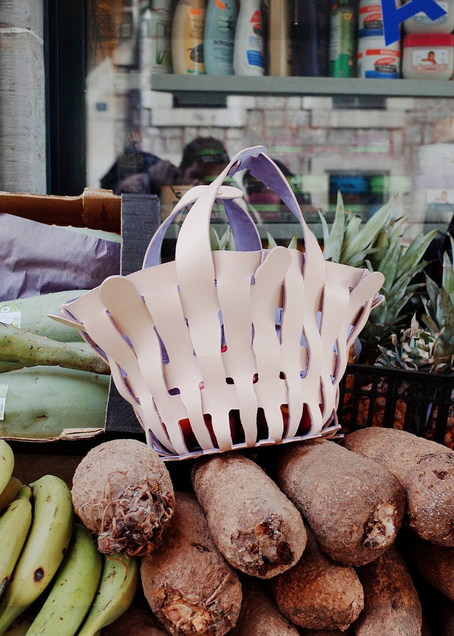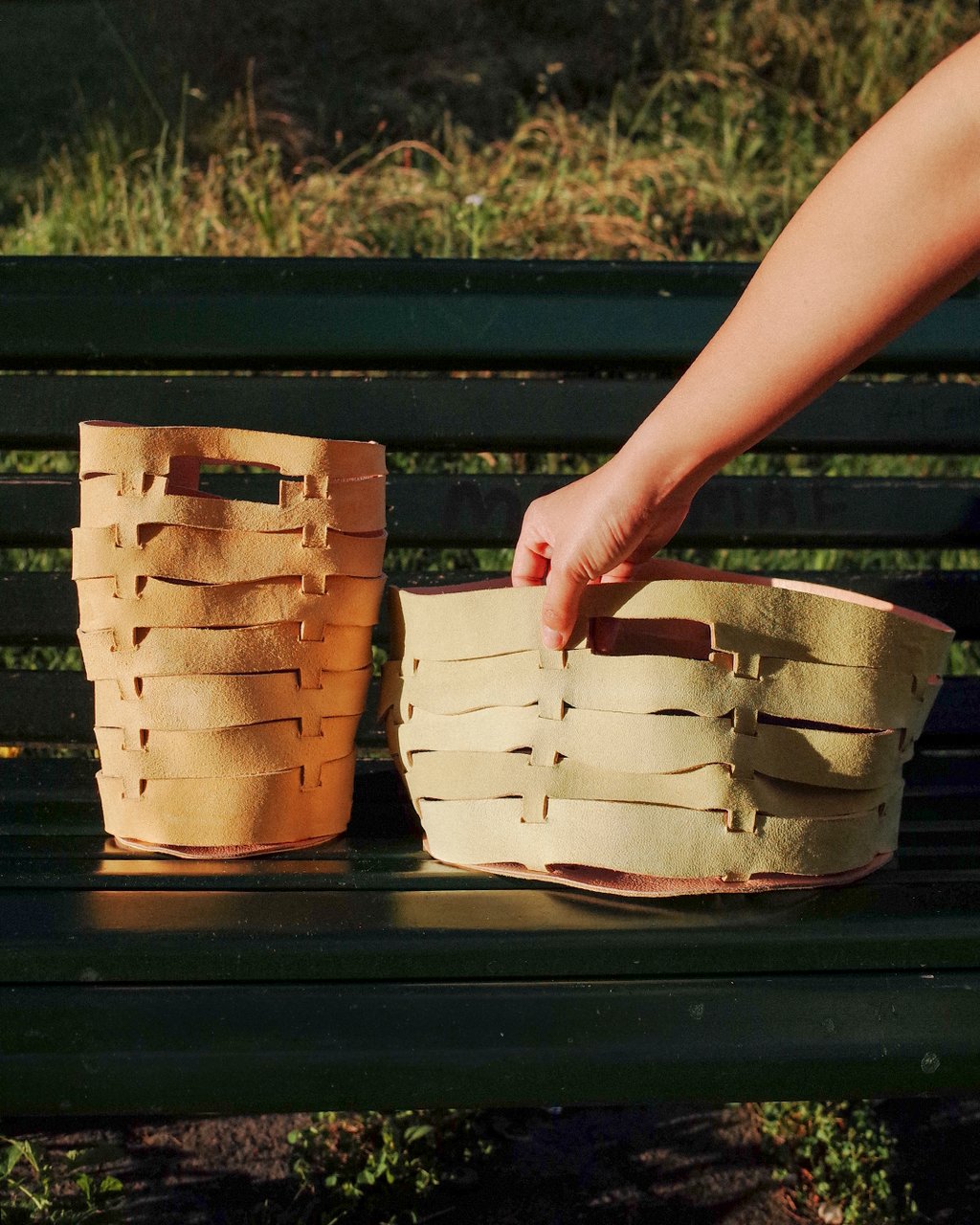 Fruit is a universal delight, cherished by everyone. The different ways people peel and cut fruit create unique patterns that reflect individual styles. Drawing inspiration from these techniques, the basket collection embodies the intricate and distinctive patterns found in fruit peels. Crafted from high-quality leather, the baskets feature a range of colors that mimic the vibrant hues of fruit rinds. As the leather ages, its texture naturally evolves, adapting and transforming with each use to suit the owner's lifestyle. The baskets embody the elegance of simplicity, turning an everyday activity into a source of refined inspiration.