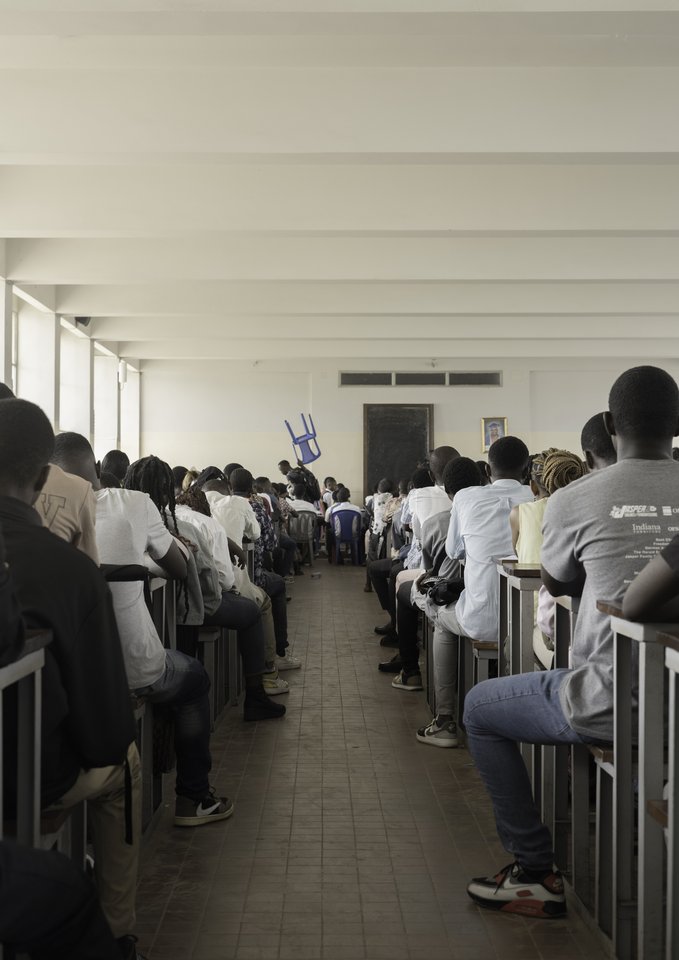 The images in this edition are fragments of an immersion at the University of Kinshasa : a glimpse into student life in a vibrant, ever-moving capital. Through laughter, doubts, and encounters, the photographer has learned to anchor herself in a daily life far removed from the one she knows in Europe. Bana ya Mbóka — children of the country — gives a face to the youths who study, dream, and resist on this campus. Founded in 1954, UniKin aimed to be a leading African institution, but instability slowed that vision. Despite strikes, power cuts, and limited resources, the students she has met exude strength and clarity. This project reveals moments of connection, gestures of resilience, and hopes that persists through it all.