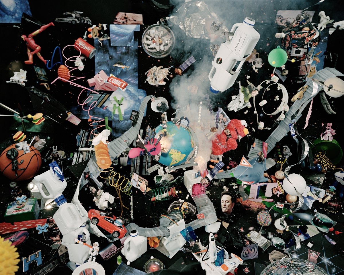 The project centers around Elon Musk’s life—his career, family, and global influence—viewed through a critical lens. Musk perceives the world as an immense playground, a glossy surface full of contradictions, where his ambiguous ties to Trump further complicate world events. Influenced by Bosch’s Garden of Earthly Delights, the clear American dichotomy between good and evil dissolves; heaven and hell blur into an indistinguishable spectacle. In this context, Texas—where Musk and members of the photographer's family reside —embodies the expansive, protective, hyper-consumerist “American way of life”, fascinated by stars yet anchored beneath a paradoxically unreachable sky. The installation-based project employs various media: 4x5 film photography, a video game, photograms and different objects.