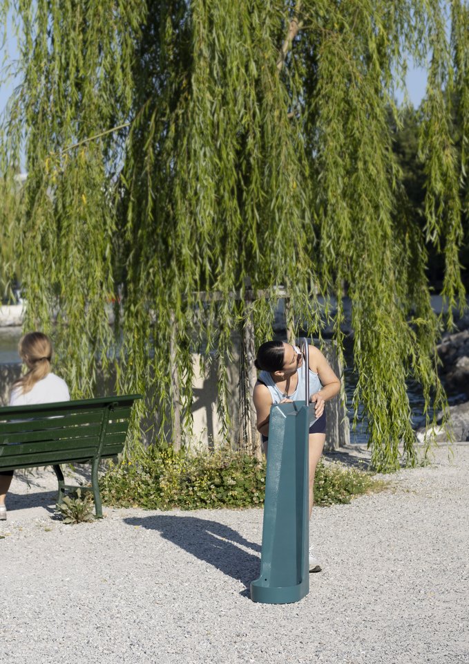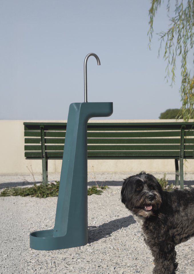 Paco is an urban water fountain designed for both humans and dogs, who are often forgotten in traditional fountains found in cities and parks. To reduce waste, a foot pedal controls the flow : as long as pressure is applied, water is dispensed. Any unused water is collected in a bowl located below, allowing a companion animal to drink. When the user lifts their foot, the water stops, and the bowl empties slowly to prevent stagnant puddles and overflow. Made of cast iron, a durable, weather-resistant material, Paco blends into the public space while strengthening the bond between people and pets.