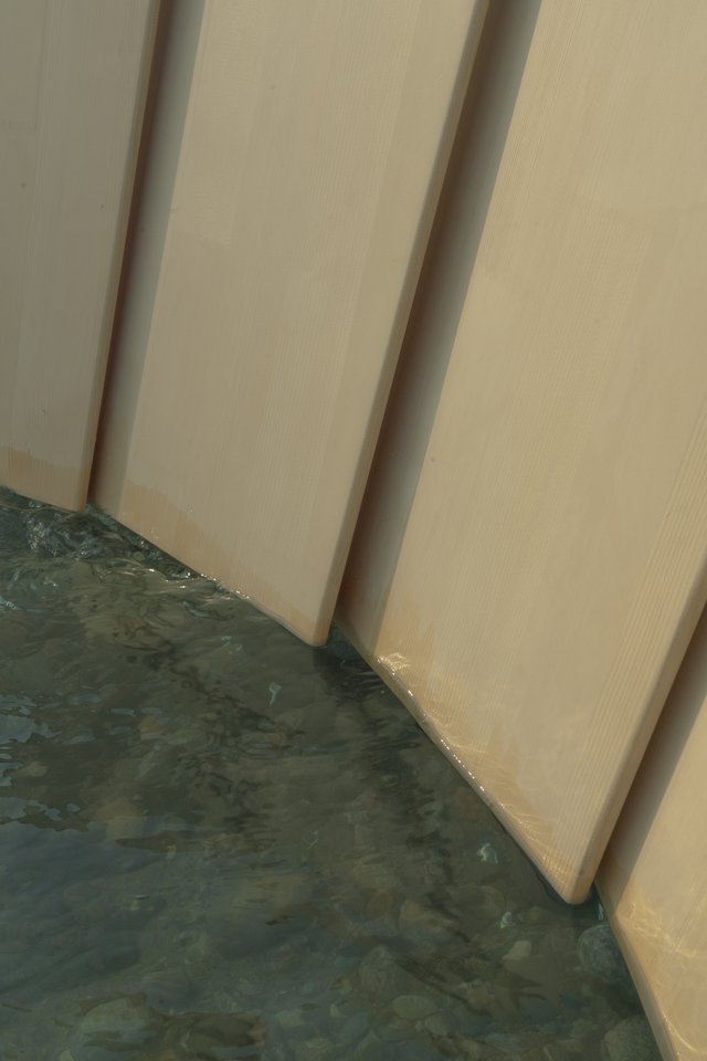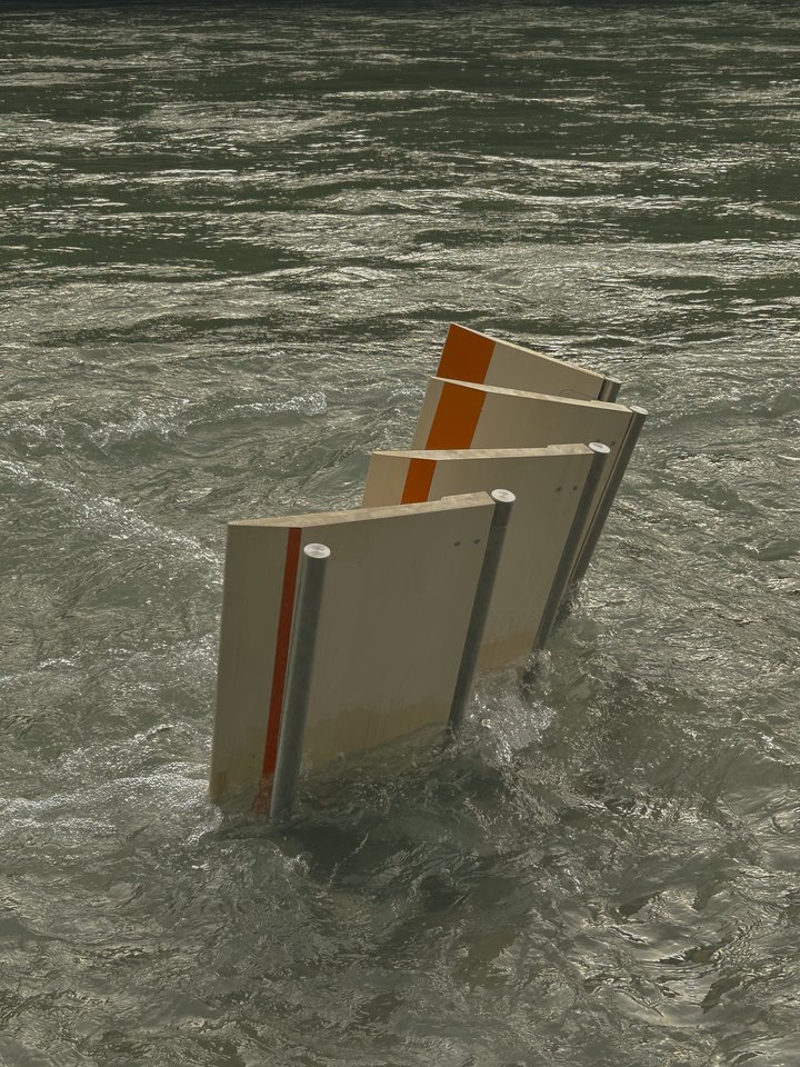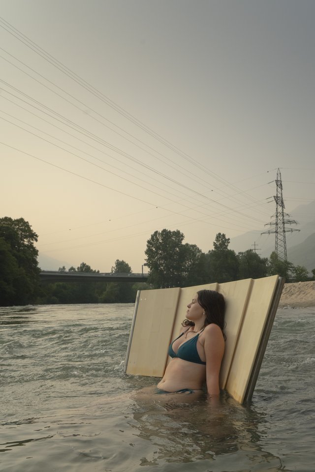 Vela is a wooden structure designed to be installed in the Ticino River, which is currently undergoing renaturation. Intended for the newly designated swimming areas, Vela invites people to step into the water and experience the river during its calmer moments. Its backrest-like shape is welcoming and offers an immersive pause in the heart of nature. But the Ticino can suddenly become dangerous: when the current strengthens, Vela opens up to reveal colorful signage that warns of the risk. It is an object that combines comfort and safety, designed to bring people closer to the river in a simple, intuitive, and responsible way.