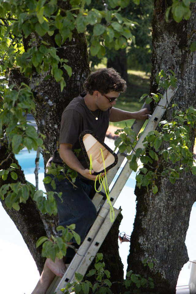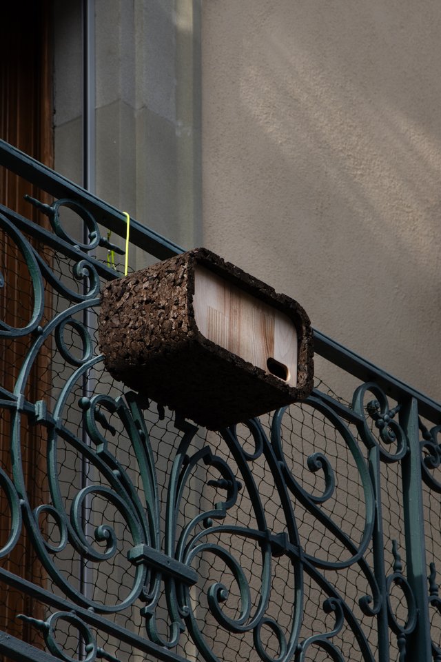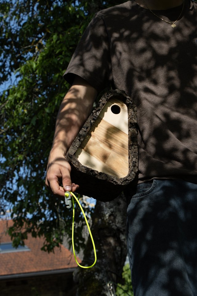 This collection of three artificial bird nests addresses specific needs for cohabitation between birds and human environments. Each model is designed to be functional, accessible, and easy to reproduce. The tit nest supports natural regulation of pine processionary caterpillars. The grebe nest offers a floating structure for ports, preventing the birds from settling on boats. For common swifts, the nest is designed to be mounted on balconies, significantly reducing the high costs of traditional installations. All three nests follow the same construction logic : a cork shell for thermal and acoustic insulation, combined with Paulownia panels, a durable and weather-resistant wood. Their simplicity allows for production and assembly within sheltered workshops.