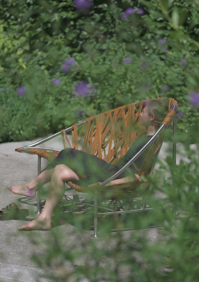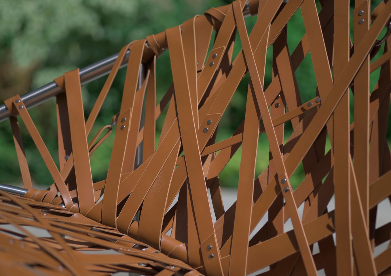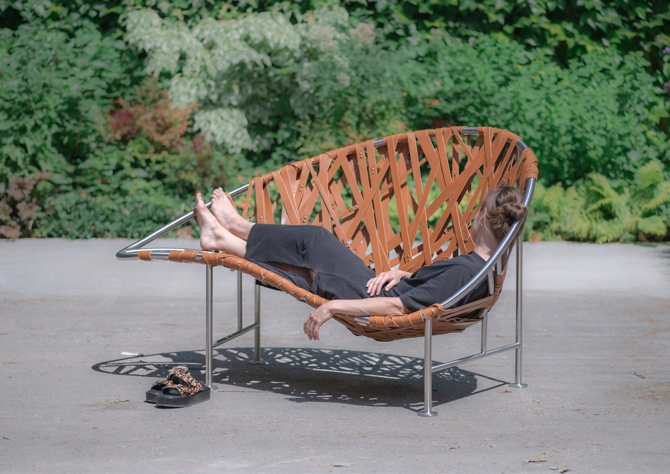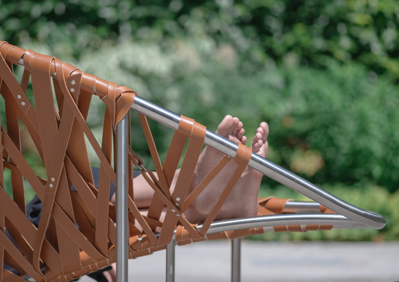 Baya is a lounge chair inspired by animal nests. Starting with the question “Why do humans need to create?”, I explored instinctive structures built by animals—nests where function and form merge, offering a pure model of creation beyond culture and ornament. Baya’s CNC-bent stainless steel frame is imagined as branches, hand-wrapped with leather strips to form a personal nest that blends industrial precision with primal gesture. Leather, used since ancient times, softens metal’s rigidity and symbolizes the deep bond between nature and humans. Its enveloping form welcomes varied postures and moments of reflection, while the reconfigurable design fosters long-term care over short use.