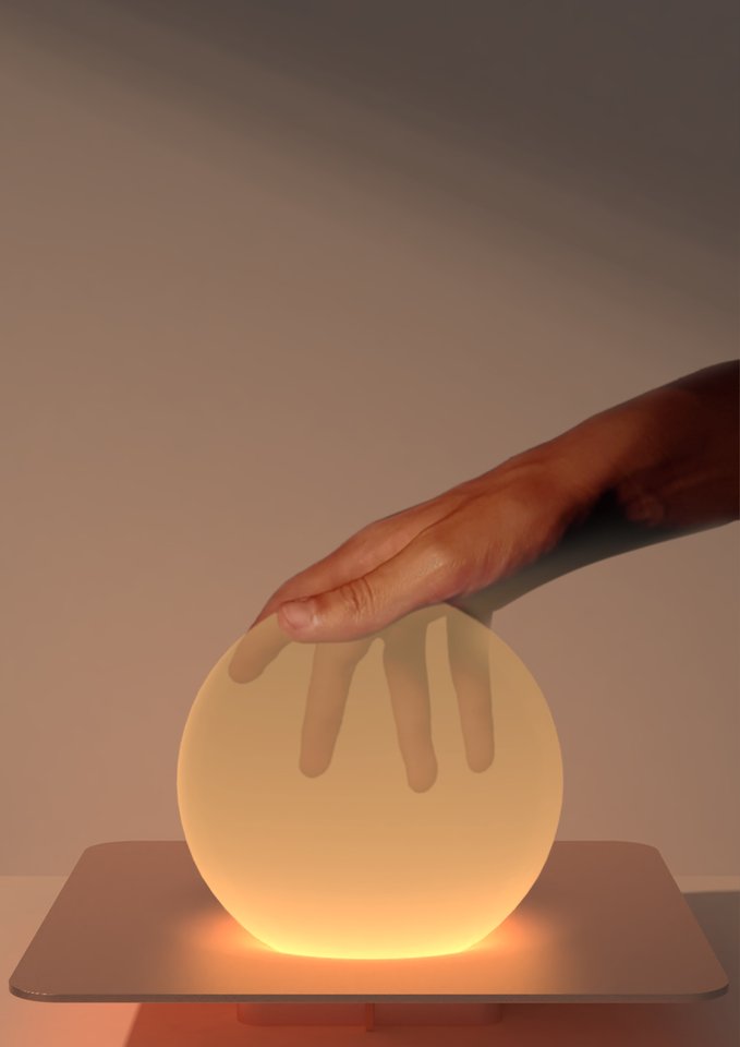 This series of lamps explores how tangible interactions can make everyday actions, such as turning on the lights, more meaningful and playful. When the user gently rotates the lampshade, the light gradually illuminates, subtly transforming the space's atmosphere. By introducing an engaging, physical gesture to activate the lamp, the act of lighting becomes less mechanical and more ceremonial. The bedside lamp invites a quiet interaction before sleep. As the user slowly rotates the spherical lampshade, the light gradually emerges, creating a calming ritual that helps the user unwind. The wall lamp, meanwhile, responds to presence, a simple interaction activates a warm glow, turning a daily transition into a mindful encounter.