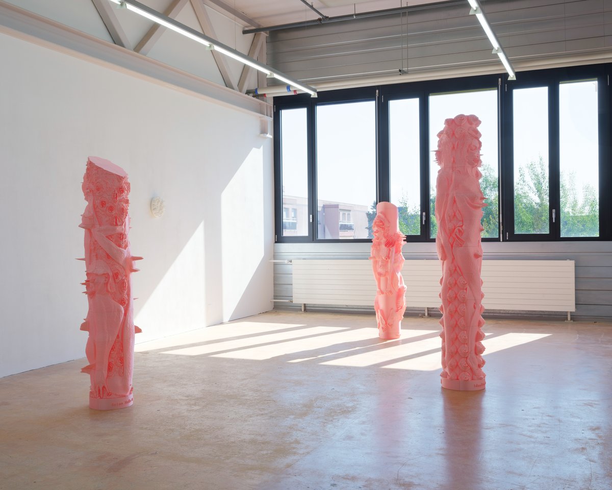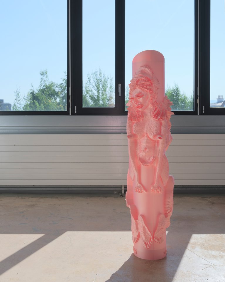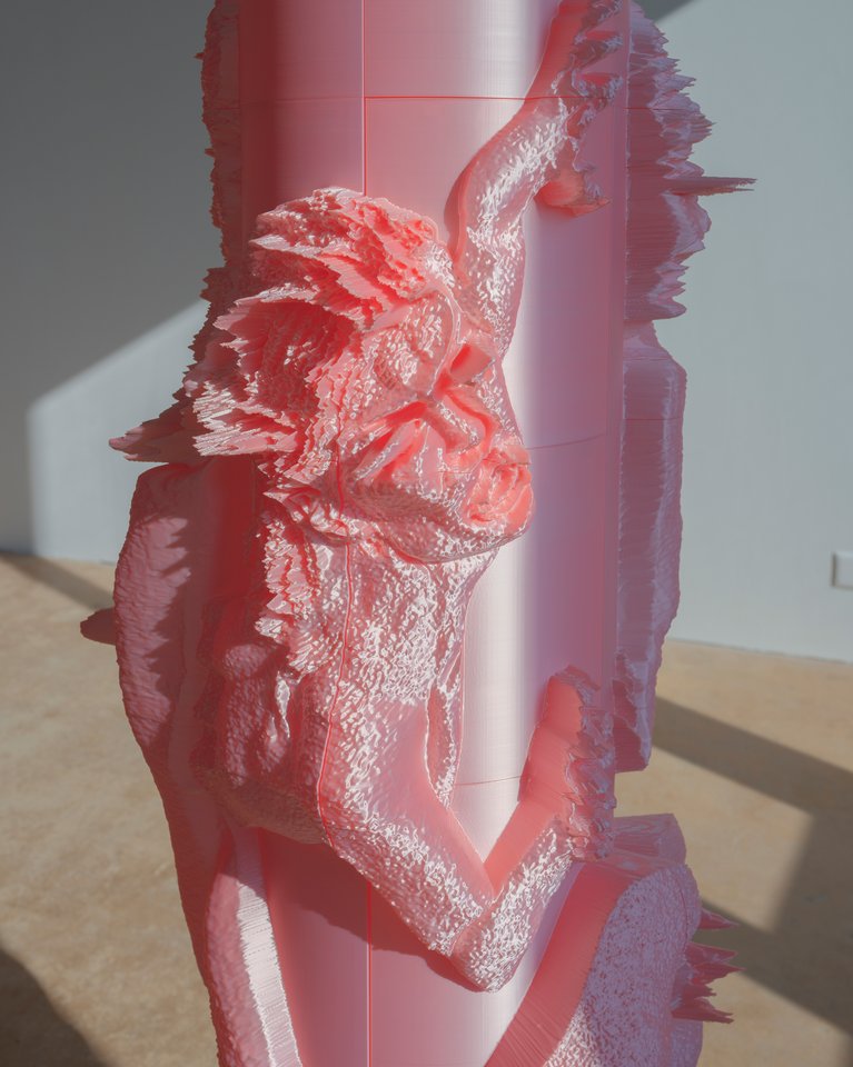 When male desire turns into violence, it often begins with the objectification of the female body. Pretty in Pink reclaims those bodies: low-res thumbnails of 3D nude female models—created by male designers for digital porn, idealized and passive—are altered using the same 3D tools that shaped them. The curves stop seducing. They become hostile, almost threatening. 3D-printed at life-size, these figures stand like anti-monuments, exposing outdated power. Installed as a narrative path, from glossy pink columns to a white-on-white final piece, the viewer moves through stages of desire, distortion, and fear. What was once virtually consumed by the male gaze now returns with physical weight, uncensored presence, and resistance.