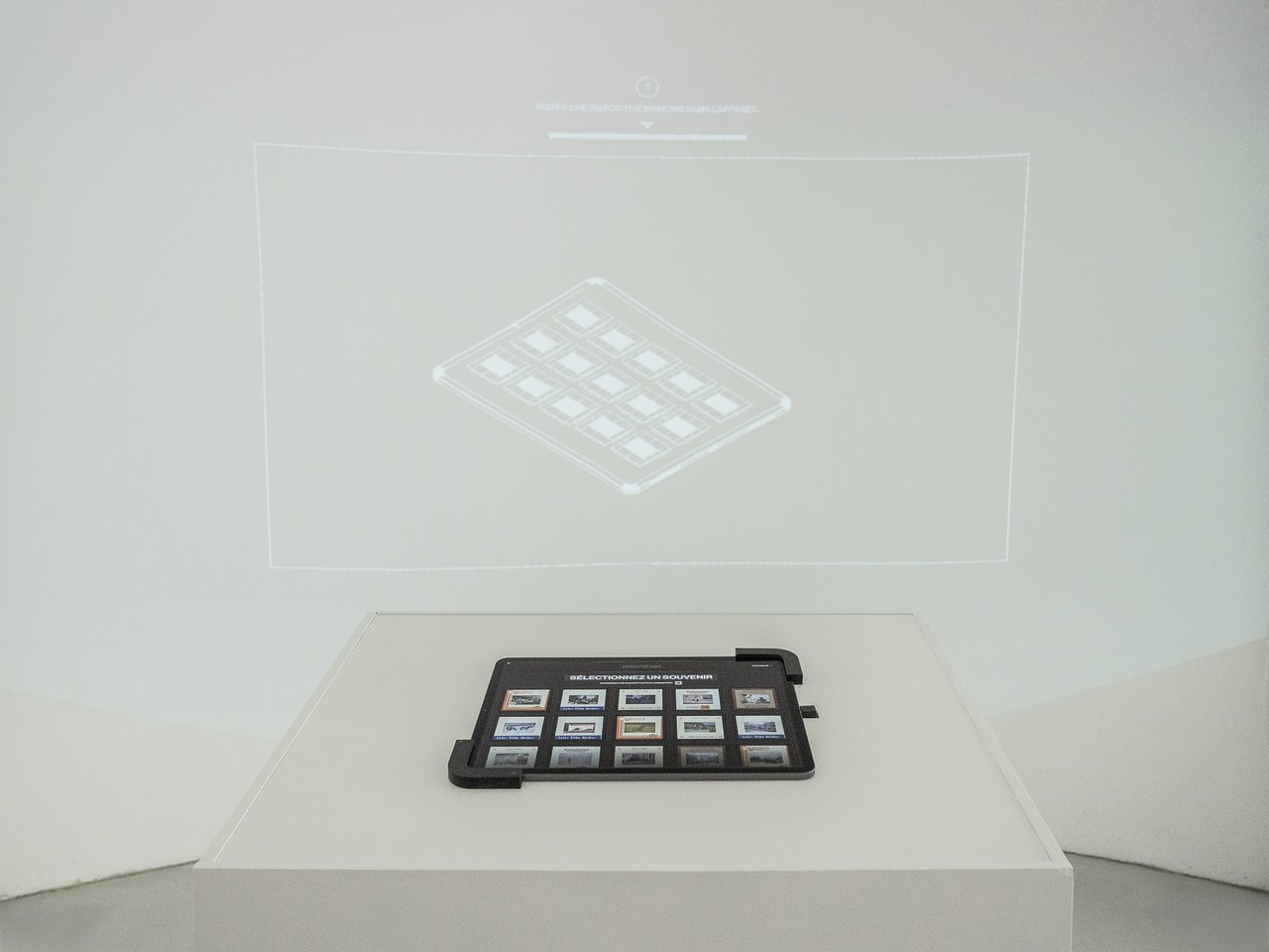 Dans une contemplation spatiale, l'image matérialisée en 3D accompagnée d'une narration générative reconstitue un passé alternatif à chaque déclenchement. Cette expérience interactive réactive le souvenir en l'absence du témoignage de son auteur et crée une passerelle entre l'utilisateur et le potentiel narratif que dégage l'image. Elle questionne la fragilité, la conservation, la confiance et la génération de nos souvenirs par les machines.