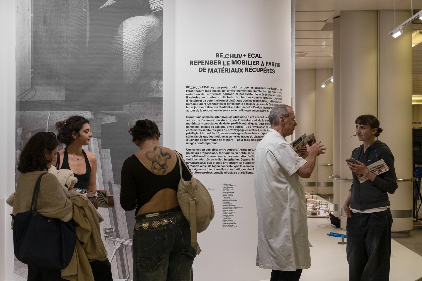 Sous la direction du designer lausannois Anthony Guex, les étudiant·e·s du Bachelor Design Industriel de l’ECAL ont inventorié et réévalué des matériaux récupérés sur la rénovation du service de radiologie ambulatoire du CHUV, puis conçu du mobilier et des accessoires adaptés aux contraintes du milieu hospitalier.