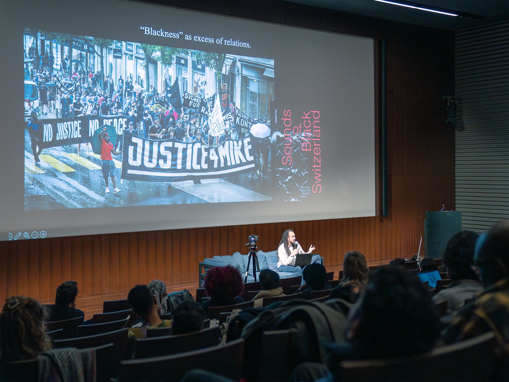 Modération par Pamela Ohene-Nyako, fondatrice d'Afrolitt', historienne des féminismes et internationalismes noirs-européens, et co-éditrice de l'important ouvrage collectif Un/doing raceRacialisation en Suisse.
