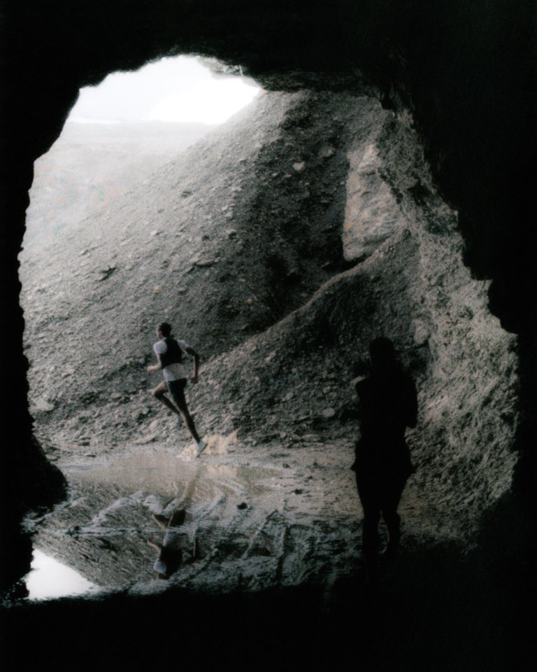 Dans un monde pollué et bruyant, saturé de stimuli superposés, il est difficile de se concentrer, de viser un objectif clair, un horizon à atteindre. L’opportunité offerte par la collaboration entre l’ECAL et Nnormal a incité une jeune génération de photographes à se tourner vers la montagne. La nature devient alors un terrain d’évasion, de communion et d’aventure, pour un imaginaire essentiel fait de corps et de paysages. L’élément médiateur entre ces deux composantes est le sujet principal : la chaussure, qui permet d’aller plus loin dans cette union. Mais dans le travail de Nicolas et de ses étudiant·e·s, il y a bien plus que des chaussures : il y a des valeurs écologiques, des atmosphères sèches ou humides, des lumières solaires et nocturnes, des textures techniques et organiques, des muscles et des visages tendus qui trouvent leur délivrance dans l’exploit. Et enfin, dans le trail comme en photographie, malgré une préparation technique et mentale rigoureuse et une étude systématique des prévisions, il existe des imprévus qui nous obligent à inventer des solutions improvisées, révélant de nouvelles formes de beauté.