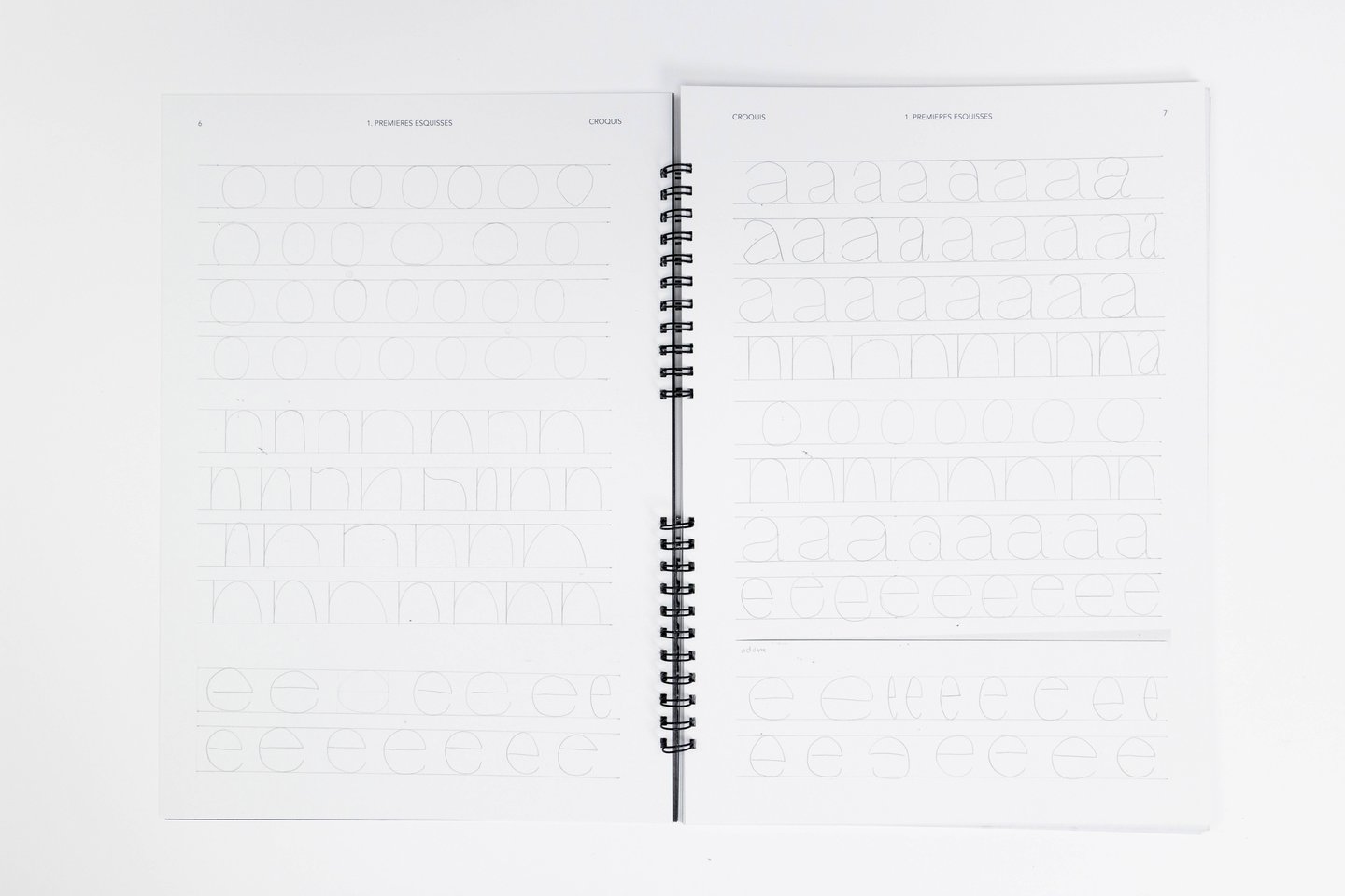 Les élèves de première année étaient invités à tracer à la main le squelette typographique des lettres minuscules de l'alphabet. L'objectif était de respecter les proportions, les courbes et les axes caractéristiques de chaque lettre, tout en portant une attention particulière à la cohérence visuelle et à la régularité du tracé.